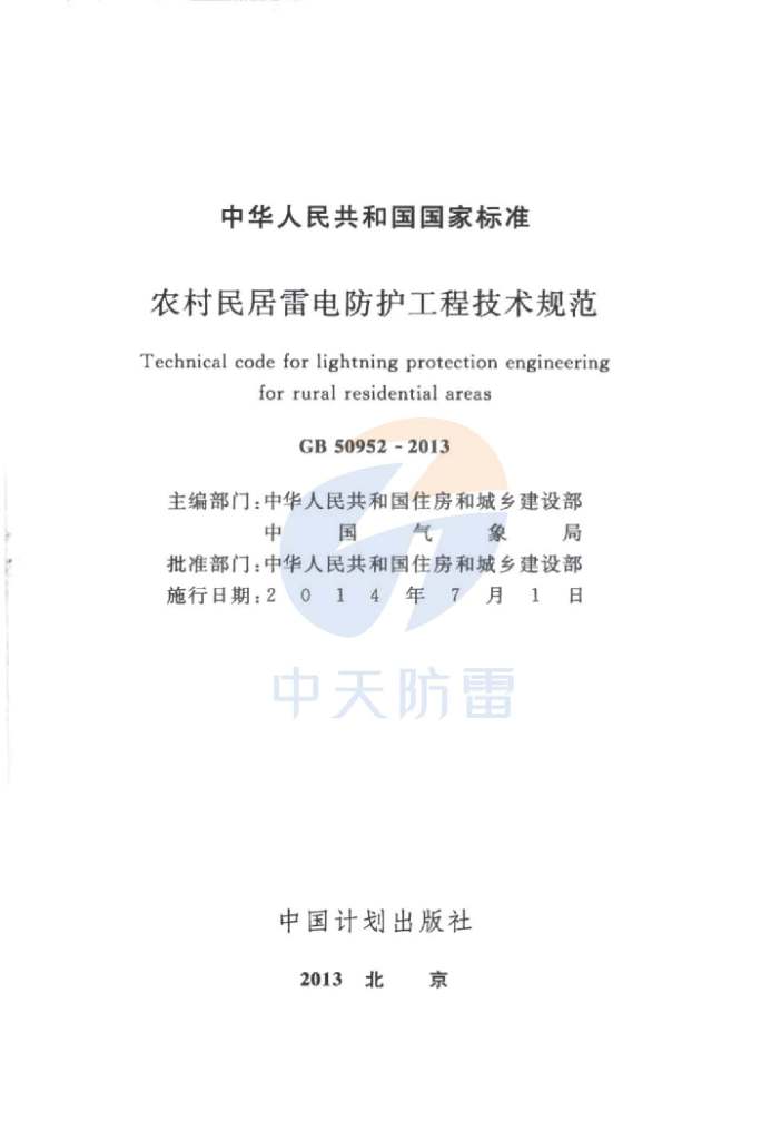 >> 農村民居雷電防護工程技術規范 GB 50952-2013