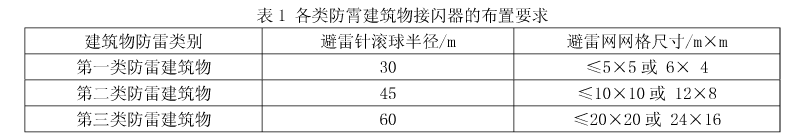三、首次檢測時應檢查接閃網格的網格尺寸是否符合本表1的要求,第一類防雷建筑物的接閃器(網、線)與風帽、放散管之間的距離應滿足GB50057-2010中的第3.2.1條中的規定。
